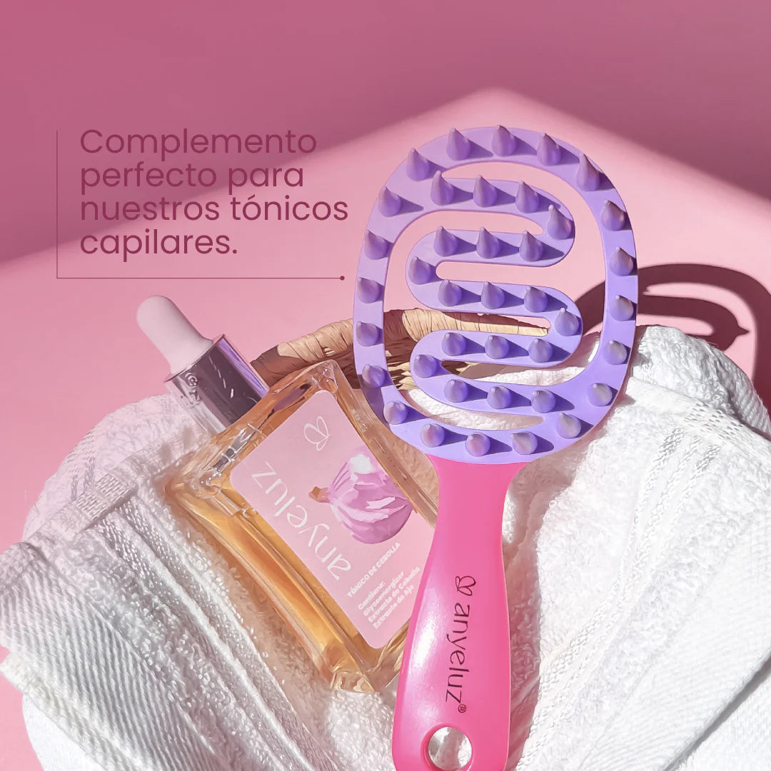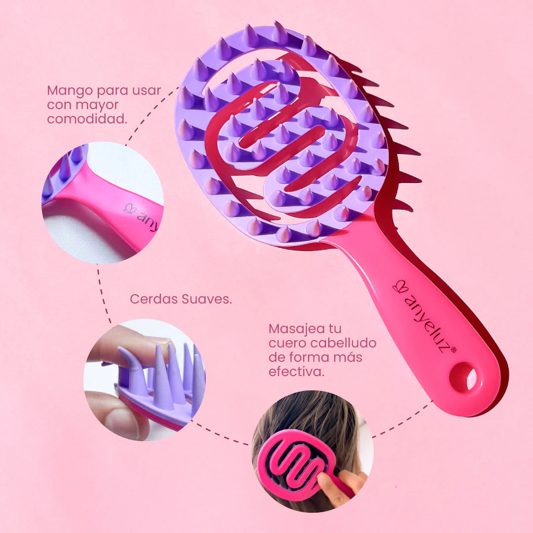 Si buscas potencializar tu rutina capilar, nuestro cepillo masajeador es lo que tu cabello necesita. Este accesorio no solo estimulará la circulación y abrirá tus folículos capilares, sino que también maximizará la absorción de los nutrientes en cada tratamiento que te apliques.