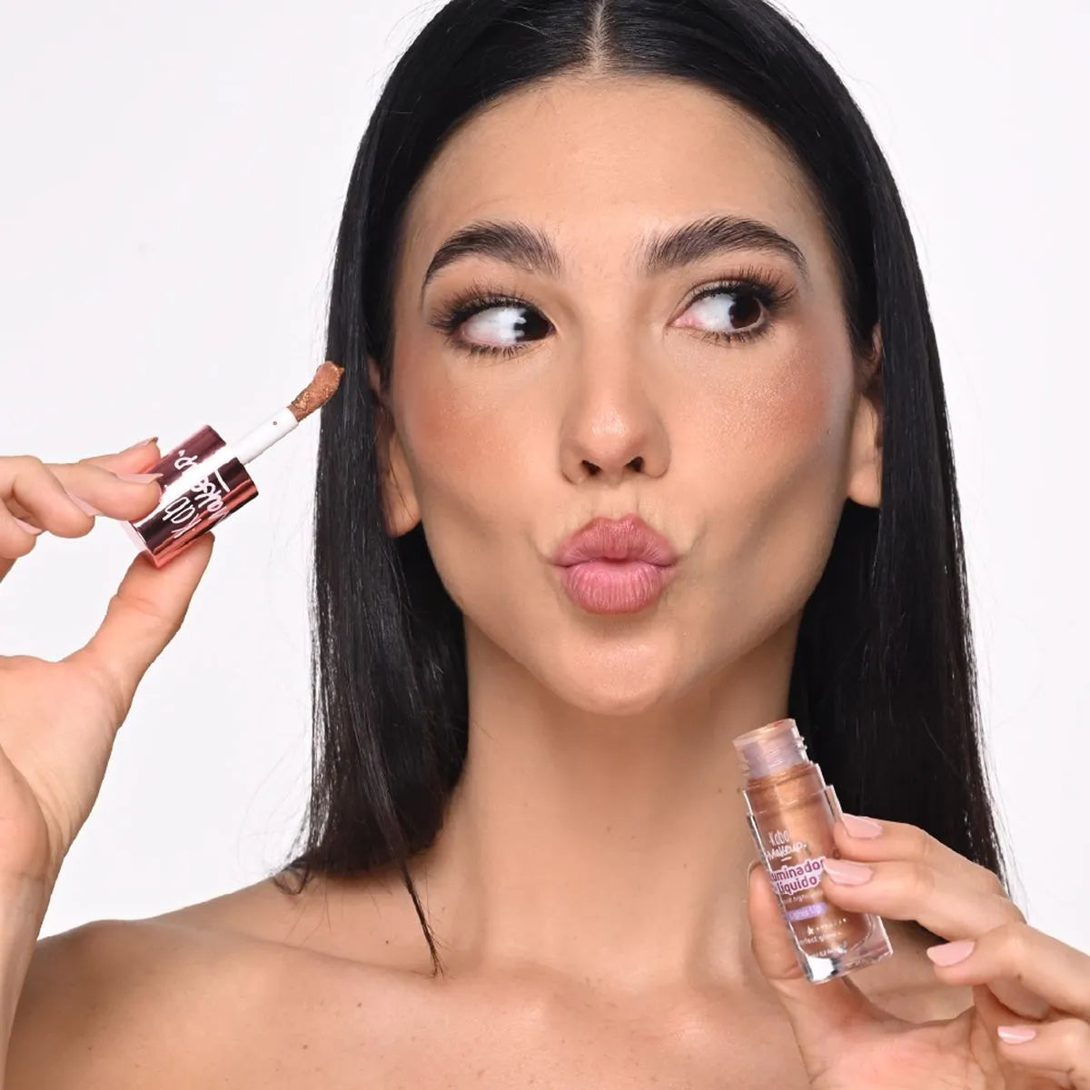 El verdadero Let´s glowing whit Kaba Makeup lo sentirás cuando te apliques nuestros iluminadores. Este producto tiene la textura perfecta y el brillo ideal para darle vida a las zonas altas de tu rostro.