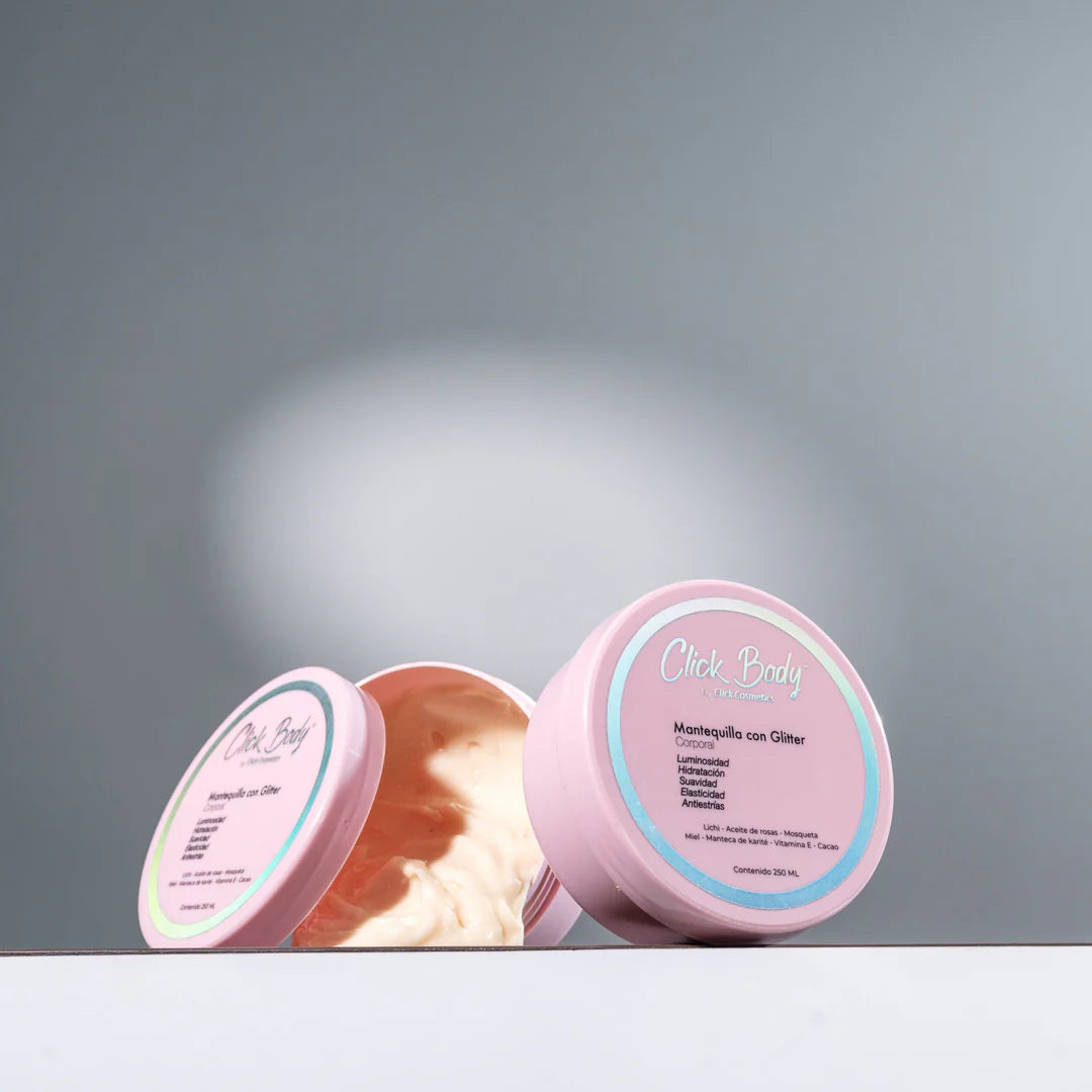 Deleita al mundo con una piel ultra hidratada y llena de brillo con nuestra Mantequilla, que contiene partículas de glitter que te harán brillar y no pasar desapercibida, además de un aroma de sueños que encantará todas las miradas, mientras nutres a profundidad y luces una piel llena de vida.