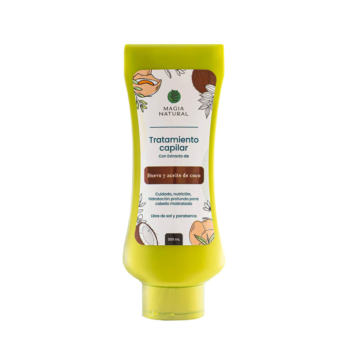 Se aplica en el cabello húmedo o seco, se deja actuar durante 40 minutos, luego lavas con tu shampoo de Magia Natural, puedes usarlo 2 o 3 veces por semana.